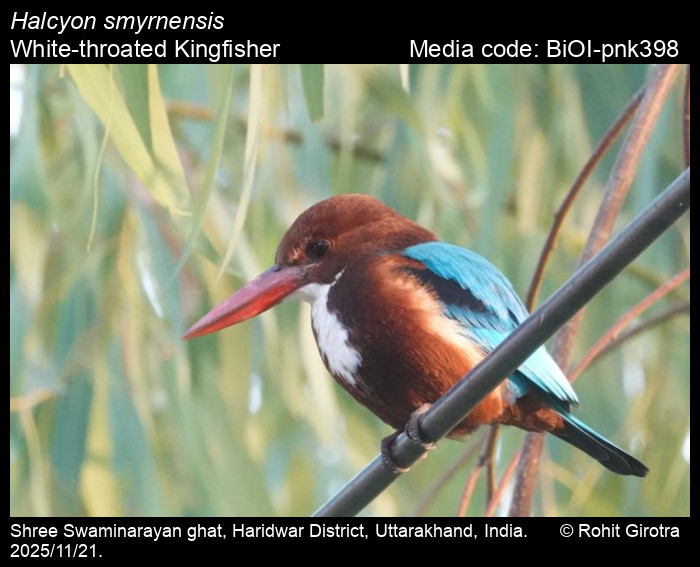 Anonymous 2026. Halcyon smyrnensis (Linnaeus, 1758) – White-throated Kingfisher. In Satose, V., A. Bayani, V. Ramachandran, P. Roy, and K. Kunte (Chief Editors). Butterflies of India, v. 2.17. Published by the Indian Foundation for Butterflies. URL: https://www.birdsofindia.org/halcyon-smyrnensis, accessed 2026/02/06.