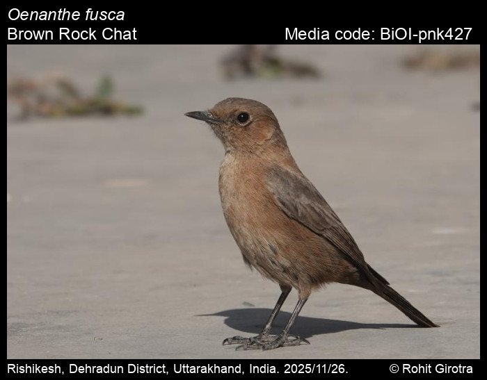 Anonymous 2026. Oenanthe fusca (Blyth, 1851) – Brown Rock Chat. In Satose, V., A. Bayani, V. Ramachandran, P. Roy, and K. Kunte (Chief Editors). Butterflies of India, v. 2.17. Published by the Indian Foundation for Butterflies. URL: https://www.birdsofindia.org/oenanthe-fusca, accessed 2026/02/02.